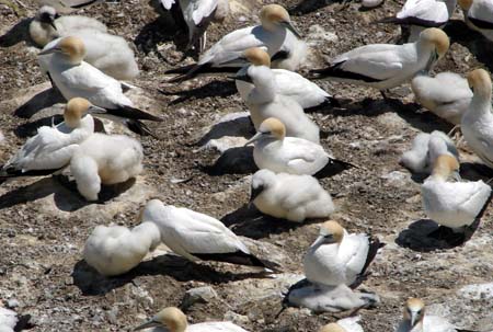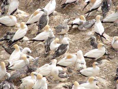 Back at Muriwai the chicks have hatched and are white little balls of feathers. The adults are busy regurgitating food and quarelling with one another. Not much else has changed, it is a bit warmer and Lorna has finally arrived. The gannets in turn still smell like fish vomit. And taking pictures has become a little more dangerous as we each get free samples of gannet guano on our clothes to take home.